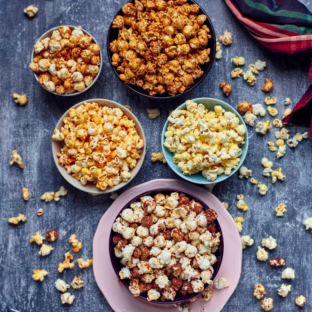 Kernels generally get divided between “white” and “yellow” varieties. White popcorn has neutral taste, which makes it excellent for flavourings and seasonings, while yellow has a more nutty taste.